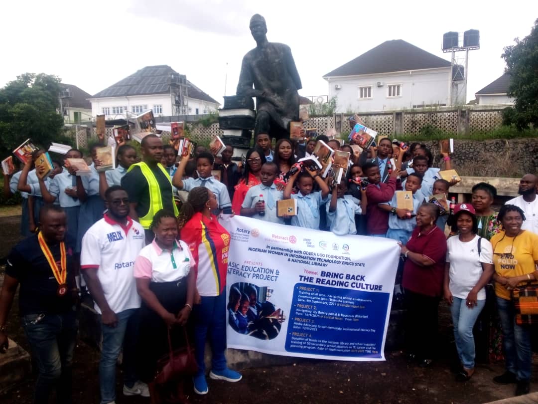 The event was organised in partnership with Rotary Club of City Center, Rotary Club of City Layout, Rotaract Club of Newhaven, Odera Ugo Foundation, Nigerian Women in Information Technology, Enugu State, and the National Library.